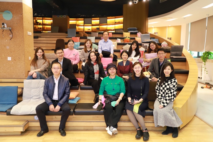 双创中心。双创中心执行主任王可、行政主管程跃、品牌战略主管郑汝婷、用户体验方向负责人刘伟老师、用户体验方向邱婧老师对参访来宾进行了接待。
