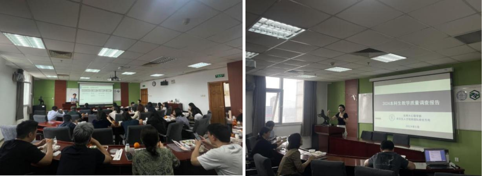 本期研讨会由本科生人才培养团队综合方向负责人孙晓敏老师统筹协调,邀请学部张西超老师作为嘉宾。张老师结合其深耕一线的教学及企业培训的相关经验,对心理学应用课程的设计思路、目标框架、方式方法、精彩案例等进行了分享,通过和煦细致的讲解鼓励青年教师们相互启发、相互学习、不断提高教学水平。而后,本科生人才培养团队综合方向教学骨干王孟元老师代表团队对2023至2024年度本科生教学质量的调研结果进行了汇报。