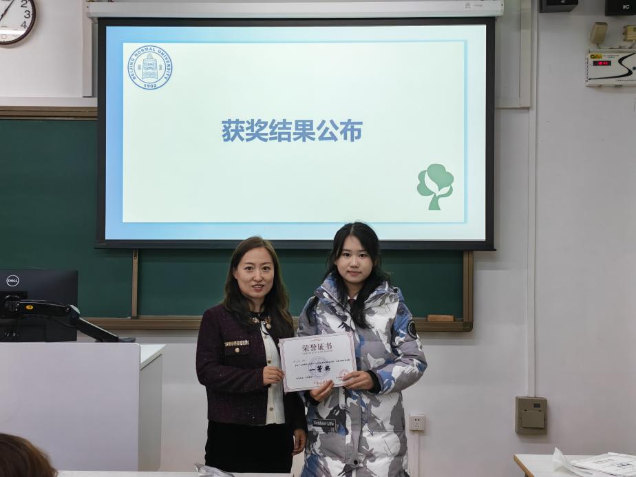 经过激烈角逐,罗心怡同学荣获一等奖,肖卓莹、杨诗婷同学获二等奖,刘梦 李宣颖 郭慧清碧同学获三等奖。评委老师为获奖选手颁奖。