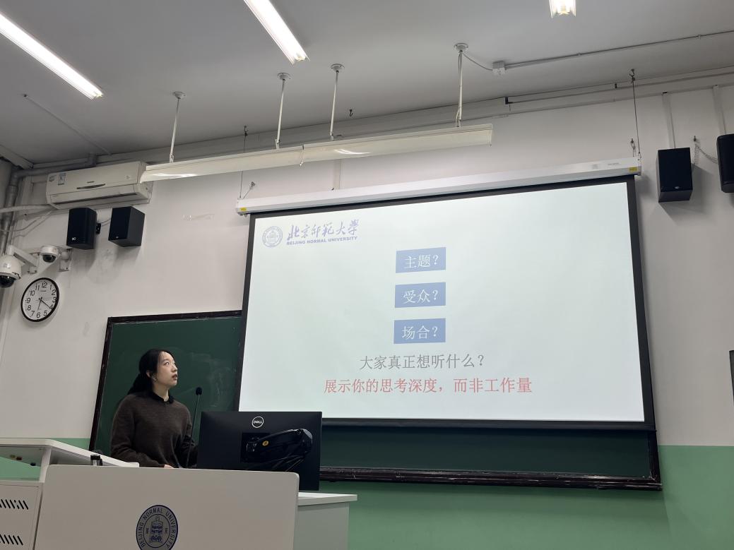 分享过程中,金卓然师姐针对答辩的开场——主线——成果——结尾四个方面分别展开了讲解,分享每个板块背后的设计技巧,并强调:“你的独特性会让你脱颖而出”,在场同学频频点头,活动后表示受益匪浅。