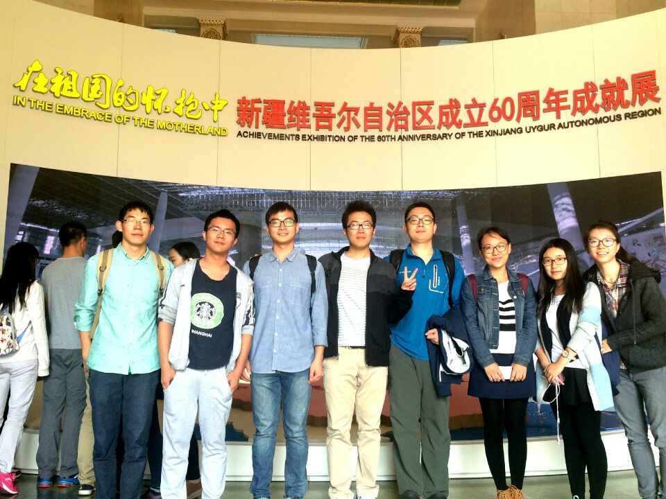 2015年10月15日,我院张岂铭、李卉子、王哲睿、唐文俊、王佳成等八名同学在本科生工作处的组织下参观了于民族文化宫里举办的“新疆维吾尔族自治区成立60周年成就展”。 本次展览中,同学们对新疆维吾尔自治区这60年里来政治、经济、文化、交通等方面的发展有了更加全面、生动的了解,深刻感受到了新疆各族人民和谐、团结、艰苦奋斗的精神风貌。通过此次展览,同学们都对新疆这一片美丽富饶的大地产生了向往之情,希望将来可以实地感受到大新疆的神秘与魅力。 (心理学院2013级本科 李卉子供稿,王哲睿、李卉子供图) |