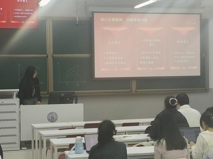 活动伊始,团支书赵家慧带领全体团员重温了习近平总书记关于志愿服务的重要论述。从致中国志愿服务联合会第二届会员代表大会的贺信,到在宁夏考察时对志愿者群体的亲切勉励,再到疫情防控期间对广大志愿者无私奉献的高度肯定,总书记的话语激励着在场每一位青年学子坚定理想信念、投身公益事业。 随后,活动围绕“什么是志愿服务”“志愿精神的内涵”以及“新时代青年如何践行志愿精神”三个板块展开系统讲解。通过案例分享与互动问答,同学们深入了解了志愿服务的五大特征——自愿性、无偿性、公益性、组织性和非本职性,并结合扶贫济困、扶弱助老、环境保护、社区服务等主要类型,探讨了志愿服务在社会治理中的重要作用。
