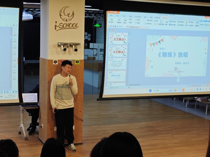 2024年12月6日晚20时至22时,污污漫画 2024级本科生文艺晚会于金丰和三楼路演厅圆满举行。 晚会开始,主持人詹恒婧、张雅欣、程依伦,以“词语炸弹”的小游戏开场,点燃了同学们的热情。接着,赵正宇同学演唱的歌曲《姻缘》为晚会正式拉开帷幕;于悦、孙亦果同学表演的《去有风的地方》双人舞,更是让同学们沉浸在温暖宁静的氛围中。