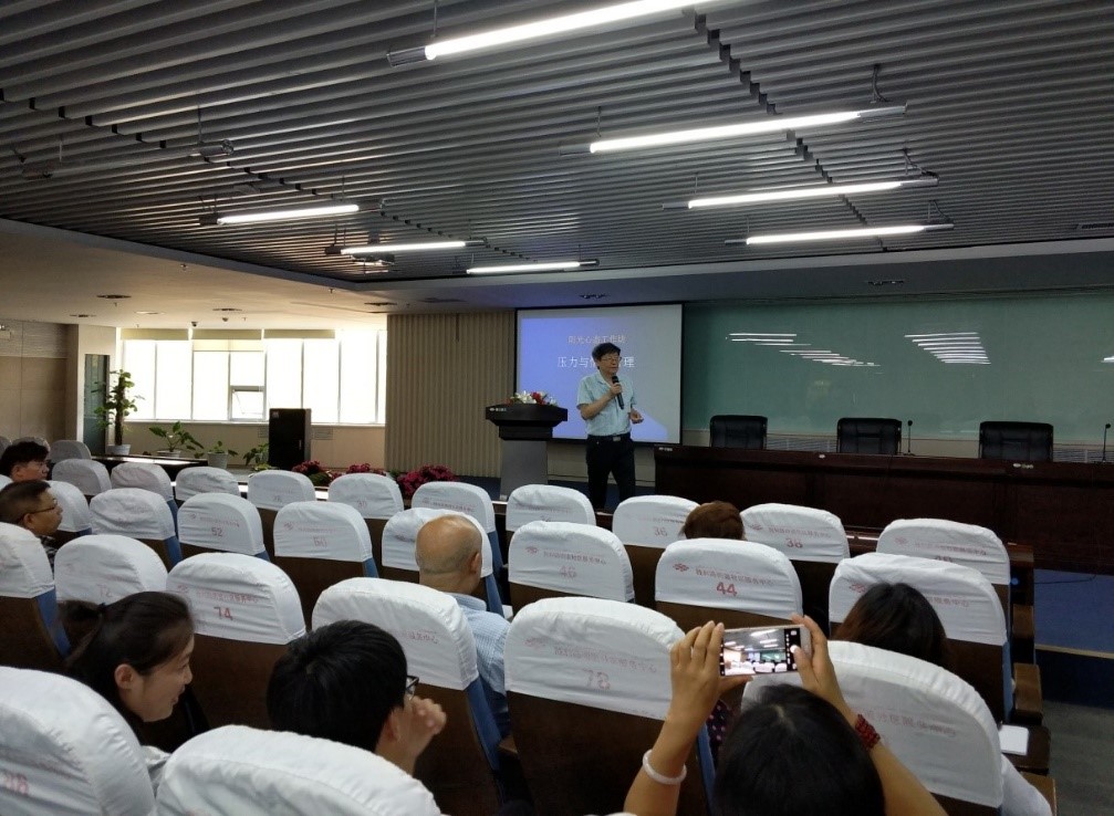 在下午的培训会上,郑日昌教授采用心理学前沿知识和现场体验方式,告诉公职人员队伍,在面临“高风险、高负荷、高压力”的“三高”工作和执法环境下,如何缓解自身的心理健康压力,做好情绪疏导,向克拉玛依区负责维稳工作的公职人员详细讲解了压力的产生、特征及危害。教会大家如何识别压力,正确对待压力,以及心理学在调节压力问题上的应用和技巧,获得参会者的热烈赞同和好评。
