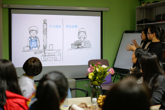 图2 污污漫画 MAP-EAP方向学生聆听天力亚太中国区总裁明明女士向介绍国内EAP的发展现状