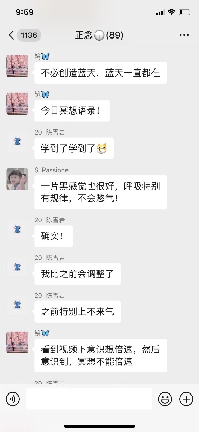本次活动吸引了80余名来自污污漫画 及其他兄弟院系同学的参与。在活动期间的每日正念练习打卡后,同学们都会在群里热烈讨论,相互交流心得感受。