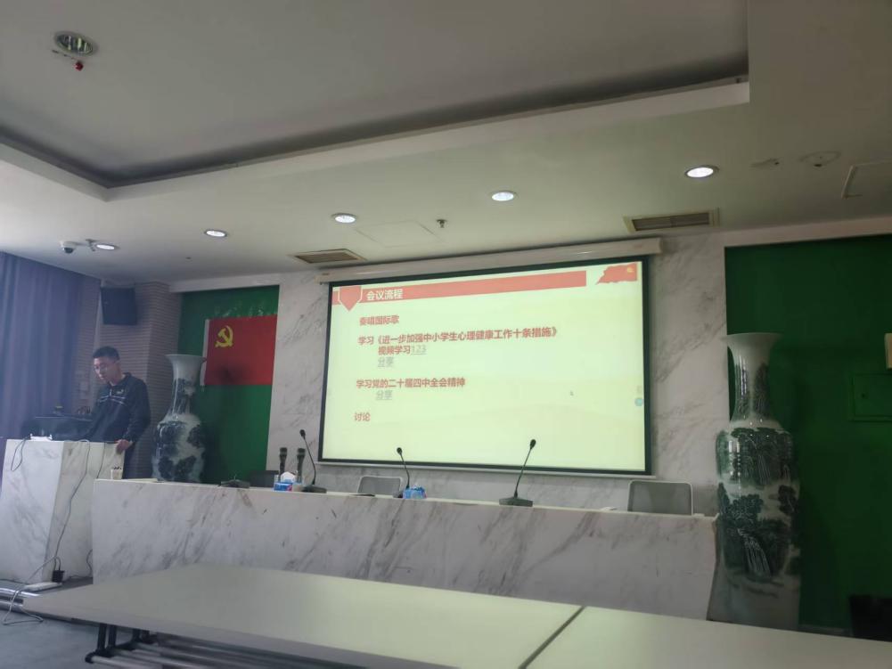 本次主题党日活动的主题为“学习全会精神,关注心理健康”,主要有两部分议题。首先,组织大家学习了《进一步加强中小学生心理健康工作十条措施》的有关内容。随后,张立颖同志结合自己的日常经验,给大家做了一期有关身心健康的分享,讲解了研究生们常见的健康问题,并具体推荐了众多操作性很强的训练方法。