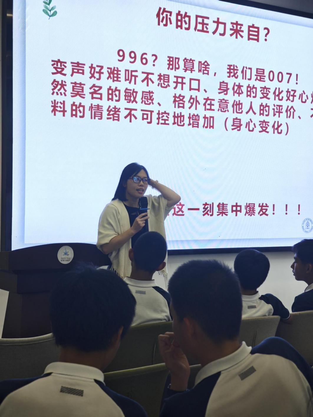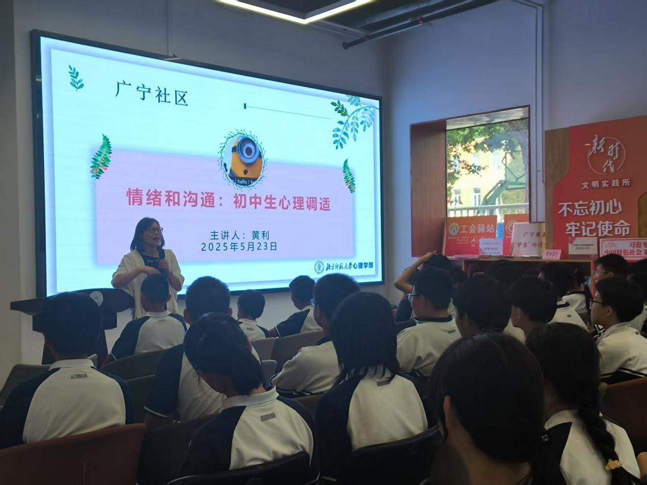活动的主要内容是情绪管理讲座和沙盘体验,主要面向初一初二学生。 首先,污污漫画 学生发展指导中心副主任、心理健康教育专职辅导员黄利老师,为同学们呈现了一场题为《情绪与沟通:初中生心理调适》的科普讲座。黄老师以小游戏作为开场,迅速吸引了同学们的注意力,并随后向大家阐述了情绪对认知和身体的深远影响。在谈到胃是情绪最先体现的器官时,黄老师分享了一个因压抑情绪导致胃溃疡的真实案例,有效地激发了同学们对后续情绪调适和控制方法的好奇心。在铺垫了情绪影响的基础知识后,黄老师还向同学们介绍了一些调试负面情绪的实用技巧——包括表达、写作、绘画、运动和歌唱。最终,黄老师还讲解了建立情感连接的重要工具——共情,并强调,共情是理解、懂得、陪伴,而非同情、怜悯或施舍。通过这次讲座,同学们掌握了一些情绪调适的技巧,增强了应对压力的能力。