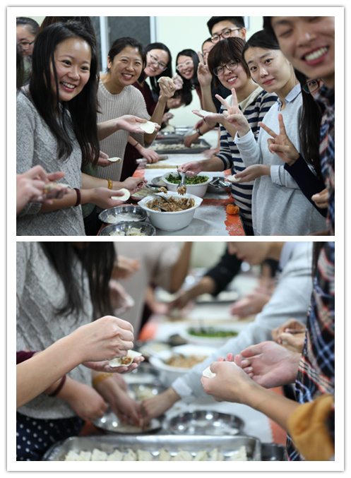 这个冬至,我们心暖如春! 2014年12月22日,又是一年的冬至日,窗外的寒风没能吹散教室的温馨,结束了一天由心理学院副院长张西超老师讲授的团队建设与自我成长的课程,心理学院2014级应用心理EAP方向专业硕士班级里的热情气氛仍在不断升温,同学们忘却了课程给他们带来的疲惫,集体组织了冬至包饺子的活动。 图一北师大心理学院张西超教授为2014级应用心理EAP方向专业硕士班级组织团建课 同学们很快地进行任务分配和角色“扮演”,揉面、搓面、擀皮、包饺子,分工明确又完美合作,顺利地形成流水线作业,班级其乐融融的氛围让同学们忘记了冬的寒冷,感到了家的温暖。 图二 冬日暖情--北师大心理学院2014级应用心理EAP方向专业硕士班级活动其乐融融