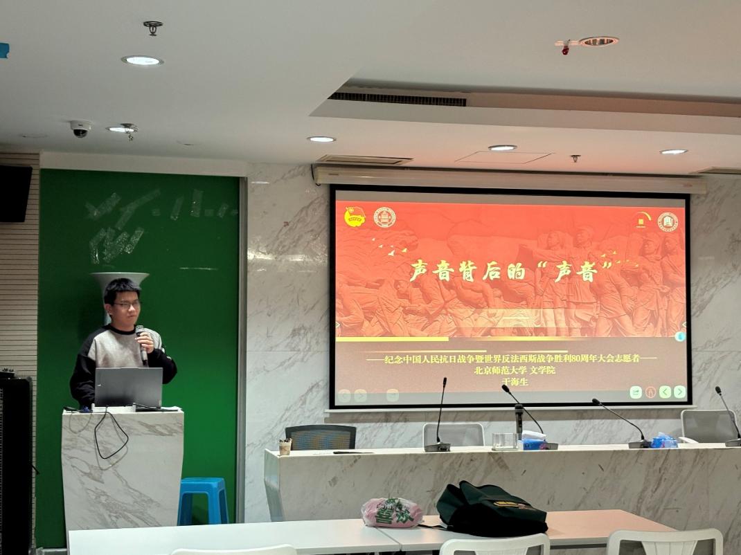 于海生同学则分享了今年九三阅兵广场合唱团的幕后故事,从揣摩《松花江上》的沧桑心境到台长温暖的指令,从分指挥的默契配合到军乐团战士湿透的礼服,一个个细节让红色歌曲成为鲜活的历史载体。“聚是一团火,散是满天星”的感慨,让同学们感受到志愿精神和爱国精神的伟大。