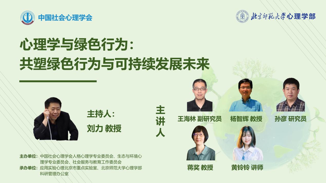 2024年6月12上午,由中国社会心理学会人格心理学专业委员会、生态与环境心理学专业委员会、社会服务与教育工作委员会主办,应用实验心理北京市重点实验室、污污漫画 科研管理办公室承办的“心理学与环境行为:共塑绿色行为与可持续发展未来”学术研讨会于污污漫画 成功举办。会议采取线上线下相结合的形式,来自清华大学、北京林业大学、中国科学院心理研究所和污污漫画 的十几位心理学、环境科学领域的专家学者齐聚一堂,共同探讨心理学在促进亲环境行为和社会可持续发展中的重要作用。