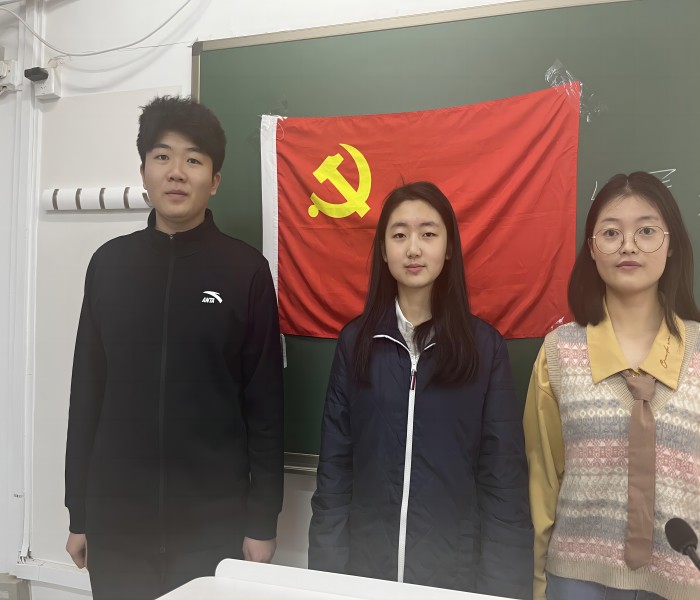 会议第一项,全体同志面向党旗站立,奏唱《国际歌》。第二项,程先楷同志介绍本次大会流程及拟发展发展对象。 第三项,发展对象赵桢碧、罗珏、简心蕊依次宣读入党志愿书,三位汇报了自己的入党动机、为人民服务的情况,表明了自己入党的志愿和决心。随后,入党介绍人宣读介绍意见,支委会宣读政治审查报告,在场的党员也展开民主讨论,对三名同志平时的表现进行了评价和肯定。