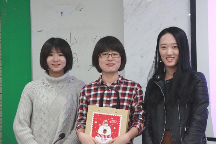 图5污污漫画 MAP联合会“学术成长系列讲座”主办方MAP联合会活动主席王越、副主席郭子熙与党建宁合影