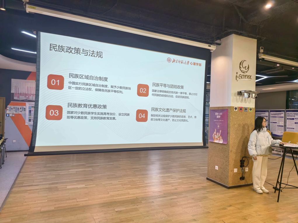 互动交流热烈,共话民族团结青春担当 在认真听取宣讲后,同学们踊跃发言,积极参与讨论环节。大家结合自己的学习生活实际,分享了对民族团结的理解和看法。 有同学谈到,在大学校园中,不同民族同学之间的相互理解、相互尊重、相互帮助是民族团结最直接的体现;也有同学表示,作为心理学专业的学生,可以从专业角度探索如何促进不同民族群体之间的沟通和理解,为民族团结贡献力量。 讨论中,同学们一致认为,民族团结不应停留在口号上,而应落实到日常生活的具体行动中。从积极参与民族文化交流活动,到主动学习民族历史与文化;从抵制不利于民族团结的言行,到主动帮助身边有需要的民族同学,这些都是促进民族团结的有效途径。 形式创新务实,确保主题教育入脑入心 本次团日活动不仅内容充实,形式上也力求创新。活动采用了宣讲与讨论相结合的方式,既有系统的理论讲解,也有充分的互动交流,确保了教育效果入脑入心。 为增强教育的生动性和实效性,活动还融入了案例分析、情景模拟等互动环节,使同学们在参与中思考,在互动中提升,深刻理解了民族团结的内涵和价值。 这种寓教于乐的方式,有效激发了同学们的学习兴趣和参与热情,使民族团结的理念真正内化于心、外化于行。