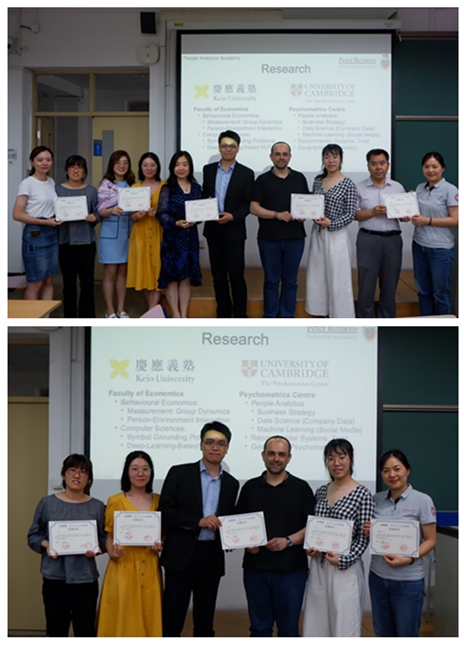第一天课程教授介绍了人力分析的历史、现状及未来发展,基于全球顶尖企业的真实案例,探索组织中的战略性机构以及人力分析职能的潜在影响,讨论人力分析技术如何能够用于测评、提升或替代现有的人才招聘和发展手段。 第二天的课程讲授了如何对来自人力部门以及企业其它系统的数据进行管理和分析,介绍了R, Python以及其它分析工具,并演示了如何利用R对数据进行可视化及描述性分析,带领大家操作了基于企业的结构化数据构建预测模型的流程。第三天的课程主要针对非结构化数据的处理,讲授如何对非传统来源(如社交网络,参与度调查或管理评估报告等)的数据进行处理。此外还演示了如何利用网页爬虫及推特进行数据挖掘,并介绍了多种形式的应用程序编程接口。 三天的课程包含小组任务以及展示和提问环节,为同学们提供了充分的交流机会。 图5 污污漫画 教师代表和主讲老师一起为“数据挖掘促进人员管理水平提升”工作坊学员代表颁发证书