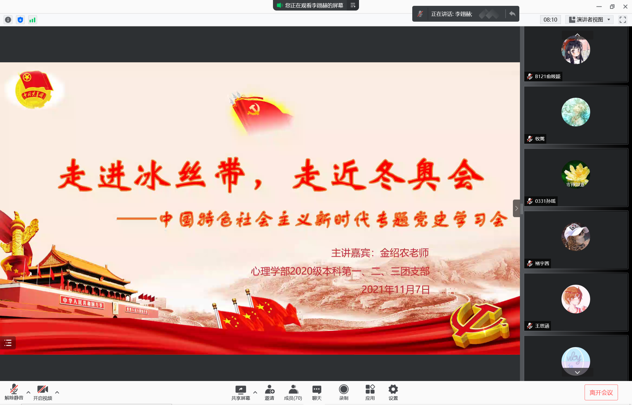 【班级】2020级本科第一、二、三团支部中国特色社会主义新时代专题党史学习会顺利召开