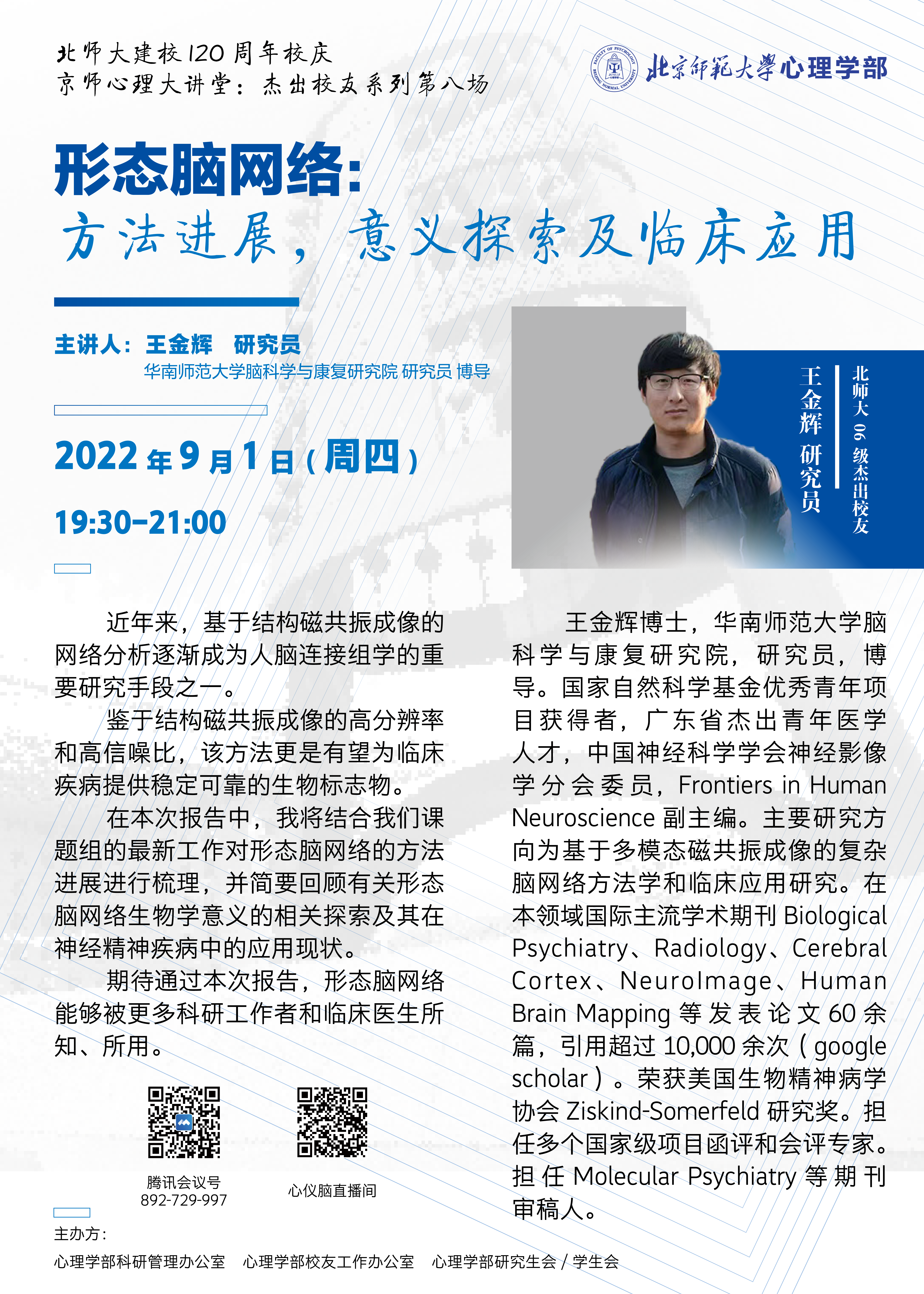 【校友讲座】形态脑网络:方法进展,意义探索及临床应用