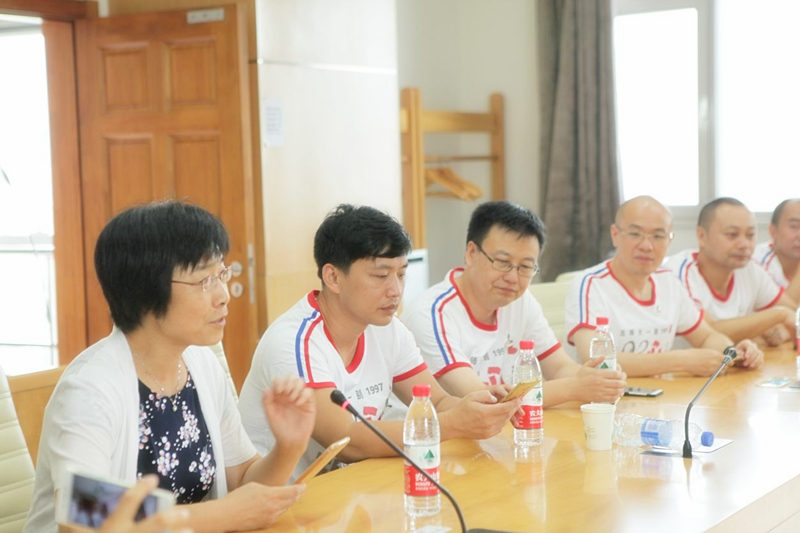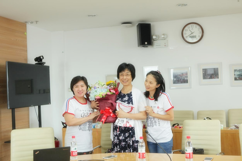 之后,寇彧老师和各位校友举行了学部座谈会,大家分别向寇彧老师介绍了自己的发展近况,并表达自己对母校的思念与感激之情;校友们还向寇彧老师献上鲜花,寇彧老师则为大家朗读名为《追寻幸福》,以表达自己对学生的美好的祝愿。 最后,大家观看上学时期的老照片,追忆往昔,并在学部合影留念,此次返校活动圆满结束。