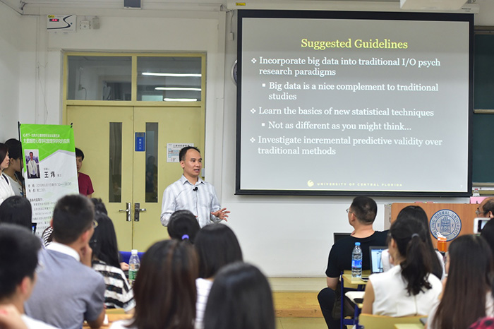 2016年6月7日晚18:30,北师大心理学院校友王炜博士受北师大心理学院邀约,在北师大教二301成功举办了校友论坛第五讲——大数据在心理学和管理学研究的应用。心理学院张西超教授主持了讲座。同时参加讲座的还有测量统计的专家及其他校友。现场座无虚席,反响热烈。 王炜博士2006年于北师大本科毕业后到佛罗里达大学访学进修,2007年进入伊利诺伊大学香槟分校(UIUC)学习。2013年博士毕业后年到中佛罗里达大学任教至今。其主要研究方向为心理测量学(人格、情商等)、大数据及其在组织行为学和管理学中的应用。最新研究《工作离职行为的社会网络传染》获得美国管理学会(Academy of Management)最佳论文奖。 在正式开讲前,王炜博士回忆了自己就读于北师大时的学习生涯,对北师大心理学院老师们的栽培和指导表达了感激之情,分享了创办学院院刊时的趣事和第一次投稿于积极心理学大会时的激动心情,同时对北师大这次校友论坛的邀约也表示了感谢。 讲座伊始,王炜博士指出,随着信息技术的进一步发展,各种数据携带着海量信息向我们涌来。这些大数据以体量大(Volume)、速度快(Velocity)、形式杂(Variety)的“3-V”特征著称,正在改变和颠覆传统的心理学和管理学研究范式。大数据通常是无规则甚至是杂乱的,怎样入手分析?通常都有哪些方法? 在讲座中,王炜博士关于"如何将大数据作为信息转化为智慧从而做到心理学中预测"的内容给出了如下建议:1. 将大数据容纳到传统数据与理论中使用;2. 不局限于传统的统计分析方法。目前大数据主要采取的文本分析、社会网络分析等方法。 接着王炜校友通过四个具体研究重点分析讨论了大数据应用在心理学和管理学研究时所面临的挑战。分别是: 编辑:心理学院校友工作办公室 张晓娜老师 |